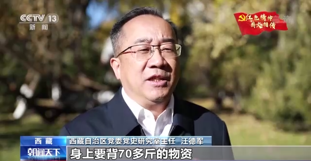 西藏自治區(qū)黨委黨史研究室主任 汪德軍:進(jìn)藏部隊(duì)每一個(gè)干部戰(zhàn)士身上要背70多斤的物資,徒步走進(jìn)西藏。在翻越西藏大山大河過程中,干部戰(zhàn)士克服了重重困難,一路為西藏老百姓看病送藥,讓我們西藏老百姓首先認(rèn)識了解放軍,認(rèn)識了共產(chǎn)黨。