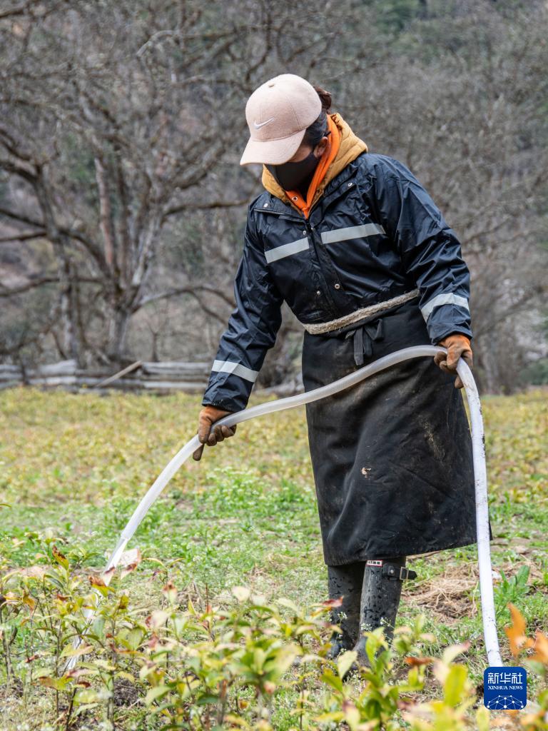 在西藏林芝市波密縣藏芝星農業科技有限公司茶園里,茶田管護員正忙著給茶樹澆水除草,門口的項目牌上展示著茶樹品種、生長周期和管護注意事項。“茶園讓我們增加了新的收入。”看著現代化的連片茶田,在此工作的古鄉雪瓦卡村32歲的村民索朗措姆由衷感慨。