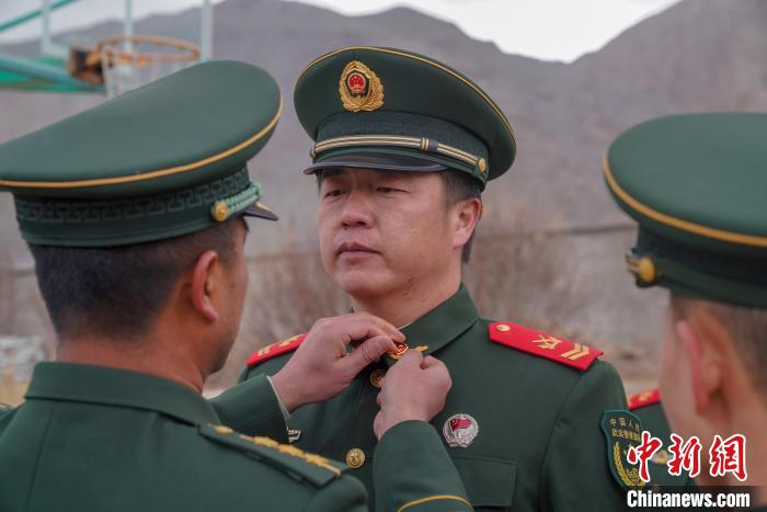 圖為武警第二機動總隊某支隊官兵為老兵卸銜。梁位高 攝