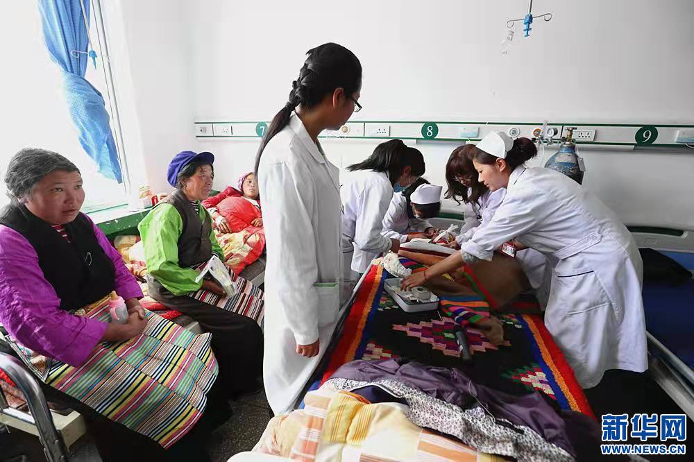 湖北醫務人員正在為西藏大骨節病患者治療。