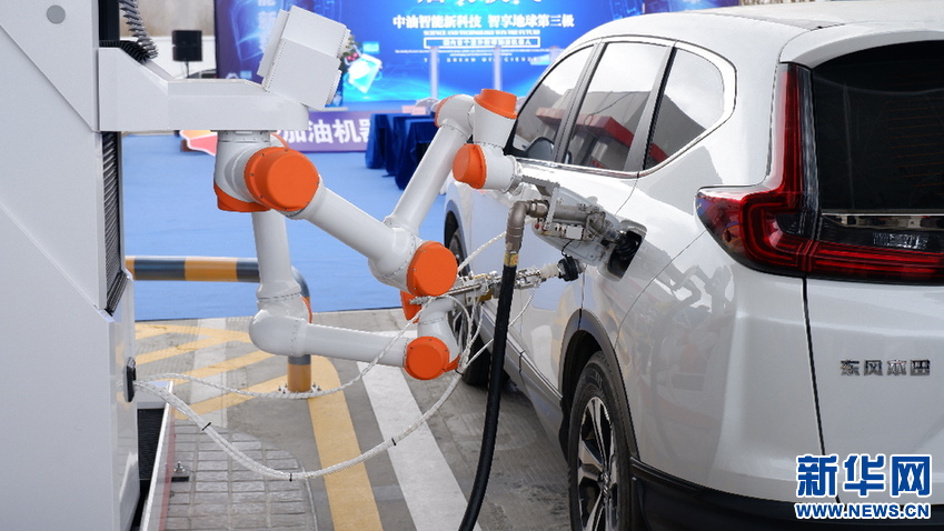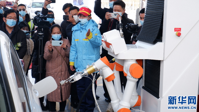 12月29日,加油機(jī)器人為汽車加油。伍世偉 攝(新華網(wǎng) 發(fā))