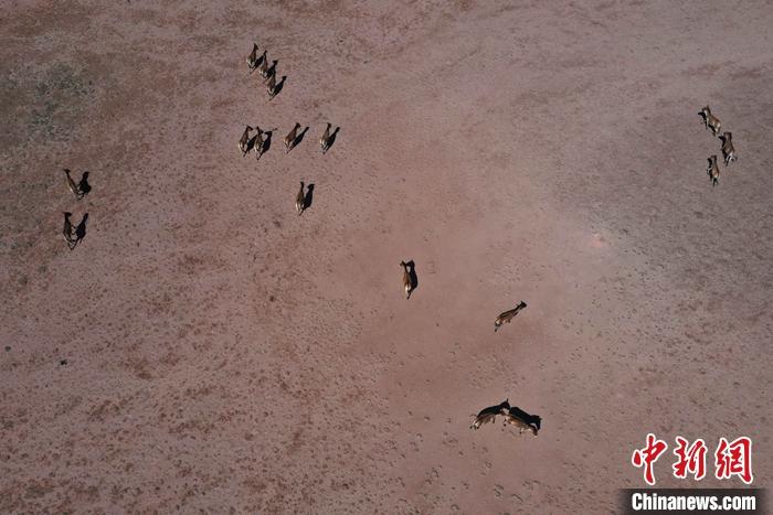 資料圖為西藏自治區那曲市雙湖縣境內的藏野驢。(無人機照片) 中新社記者 貢嘎來松 攝