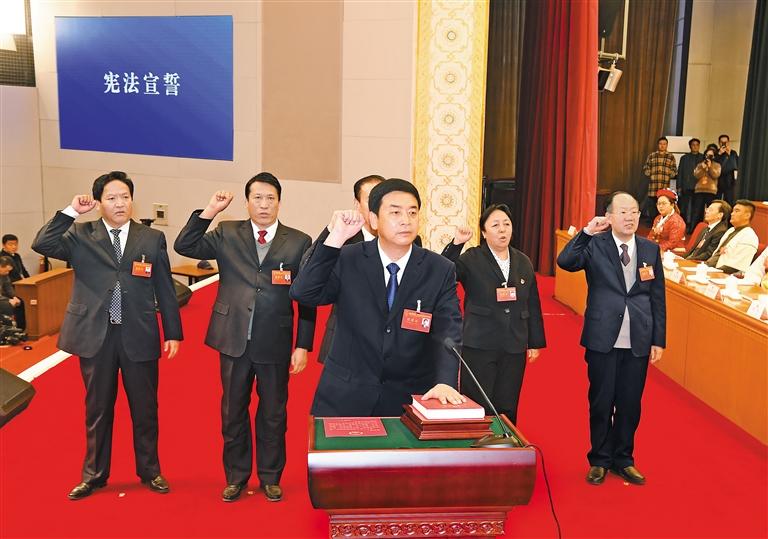 根據(jù)《全國(guó)人民代表大會(huì)常務(wù)委員會(huì)關(guān)于實(shí)行憲法宣誓制度的決定》及《西藏自治區(qū)實(shí)施憲法宣誓制度辦法》,7日上午,自治區(qū)十一屆人大五次會(huì)議舉行憲法宣誓儀式。