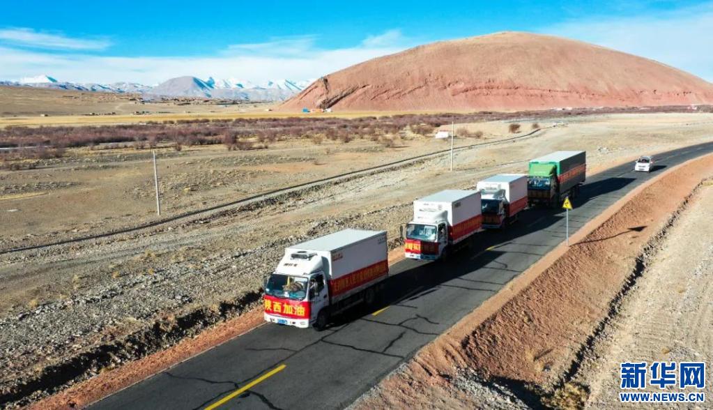 1月7日上午,4輛披著“陜西加油”橫幅的貨車滿載著防瘟香囊、鮮羊肉、礦泉水等援助物資,從西藏阿里地區發車駛向陜西省,為三秦大地送去雪域高原的祝福。