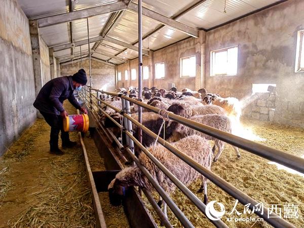 大寒時節,狂風呼嘯。在平均海拔4500多米的西藏日喀則市康馬縣涅如堆鄉藏細綿羊育肥農牧民專業養殖合作社(簡稱“合作社”),牧民占堆正忙著給上千只羊投喂飼料。他笑著告訴記者:“自從我們這兒開始人工種草后,就建立了合作社,羊統一養在合作社里,冬天再也不用去很遠的地方放牧了,日子也比以前過得好了。”