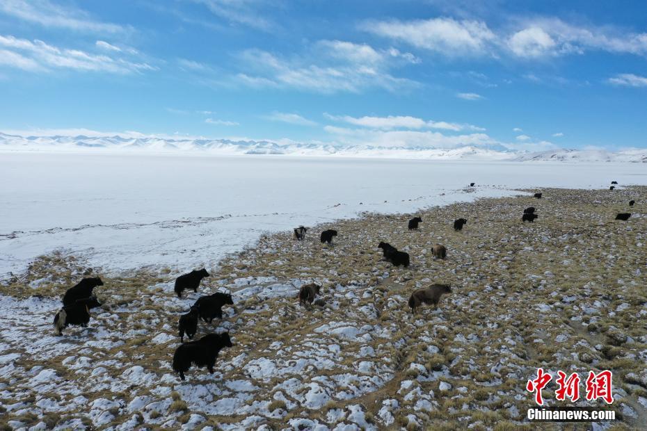 1月26日,牧民在納木錯湖邊放牧。雪后的西藏納木錯銀裝素裹,美景如畫。 中新社記者 貢嘎來松 攝