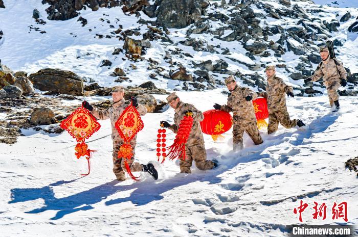 近日,西藏軍區標沙拉錯哨點官兵們喜迎遠道而來的年貨,有牛肉、羊肉、各種蔬菜水果等,送菜的隊伍還給他們帶來了紅燈籠、中國結、福字等,萬象更新的新年,哨所官兵們堅守在這里,守護萬家燈火。