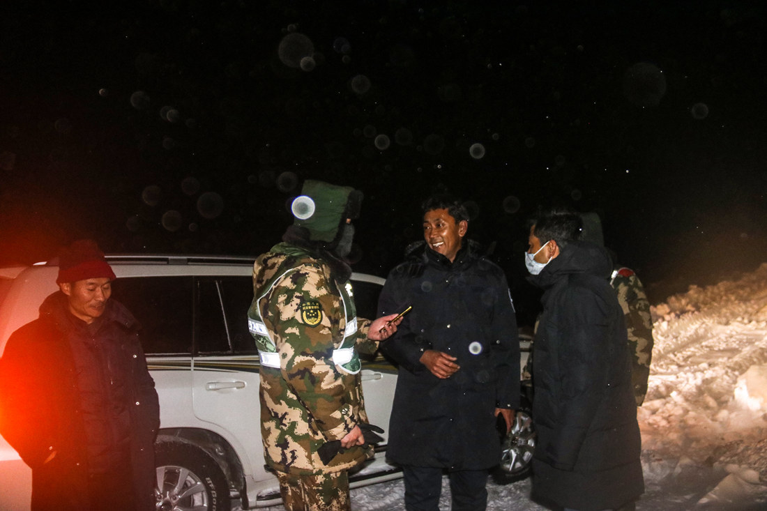 因災害現場地處平均海拔4000多米以上海拔,持續降雪不斷,加之氣溫低至零下20多攝氏度,給整個道路搶通工作帶來了不少難度。為盡快清理路面積雪搶通道路,武警官兵采取“人歇機不停、分段搶通、先通后拓”的方法進行全力搶通,克服了高寒缺氧及紫外線強烈等重重困難。