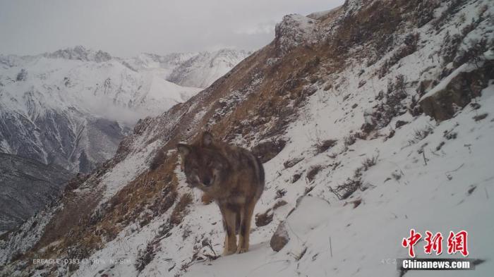 資料圖為2021年11月4日在西藏自治區丁青縣境內由紅外相機拍攝到的狼活動影像。 中新社發 山水自然保護中心 供圖