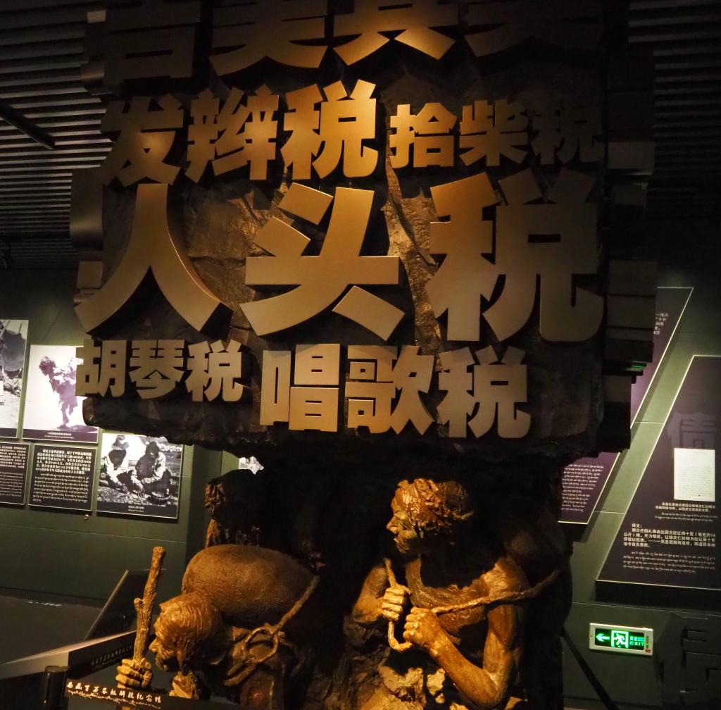 這座占地2700平方米的展館里,陳列著反映舊西藏苛捐雜稅的雕像,也陳列著舊時農奴被囚禁虐待的慘狀。