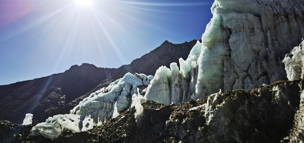 2022年3月27日拍攝的窮母崗日峰腳下的冰川。(手機照片,新華社記者 沈虹冰 攝)