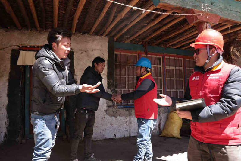 國網墨竹工卡縣供電公司員工與讓桌家人一起談論著。閆昱翰攝
