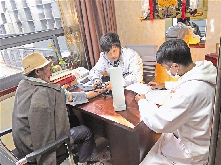 圖為林周縣朗邁社工協會的醫生為老人提供康療服務。記者 央金 攝