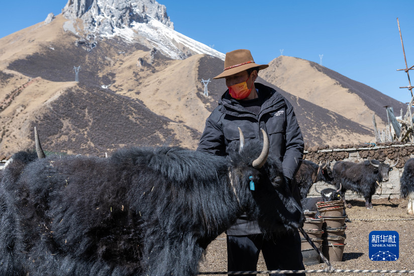 貢培在西藏娘亞牦牛養殖產業發展有限責任公司的養殖場工作(3月30日攝)。新華社記者 周荻瀟 攝