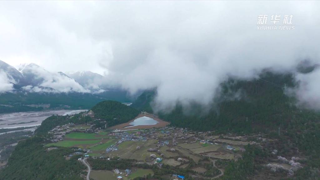 西藏林芝市波密縣擁有青藏高原最大的冰川聚集地。每年春天,桃花盛開,宛如一片片粉色祥云縈繞著村莊。