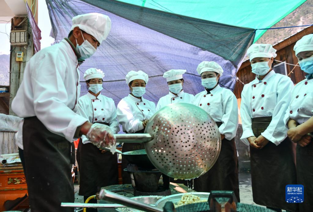 近日,在西藏林芝市察隅縣上察隅鎮西巴村,察隅縣人社局為當地珞巴族群眾舉行“珞巴宴”培訓班,讓村民在家門口就能學習珞巴特色菜、藏餐、川菜、面點等烹飪技能。