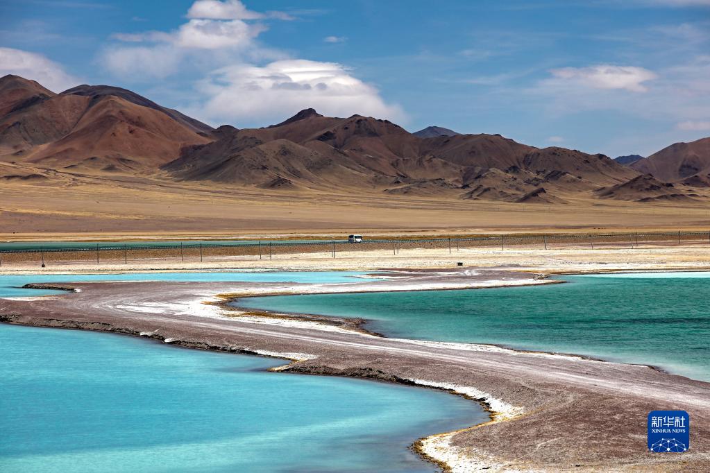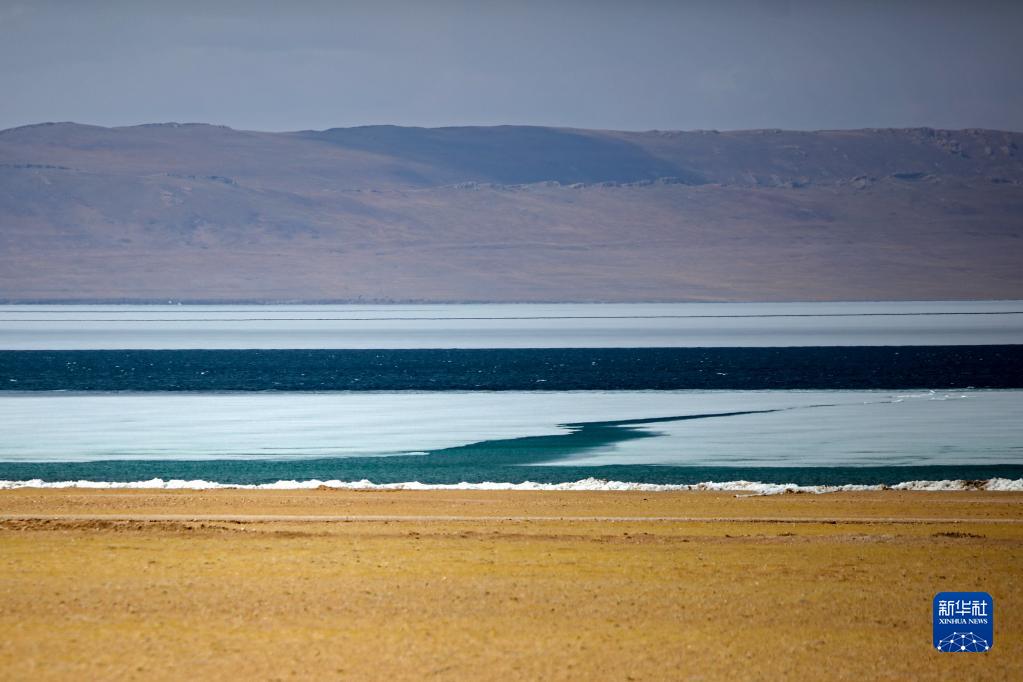 這是位于西藏自治區阿里地區改則縣的物瑪錯,湖水呈現出不同顏色(2022年4月12日攝)。新華社記者 姜帆 攝