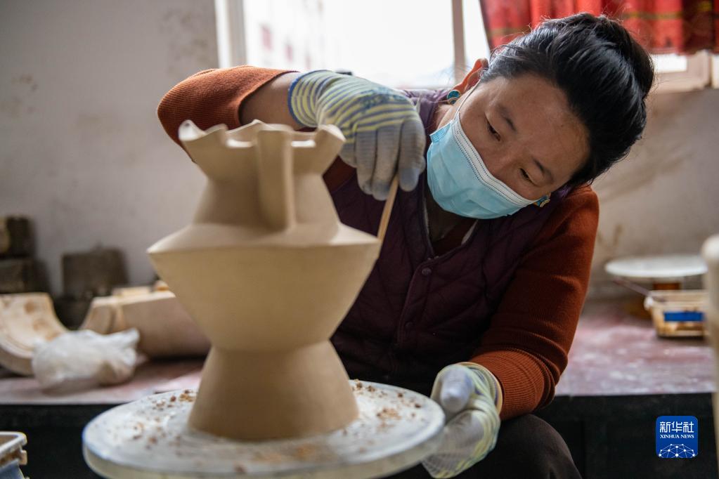 這是在昌都市察雅縣的產業車間加工完成的器皿(4月8日攝)。新華社記者 周荻瀟 攝