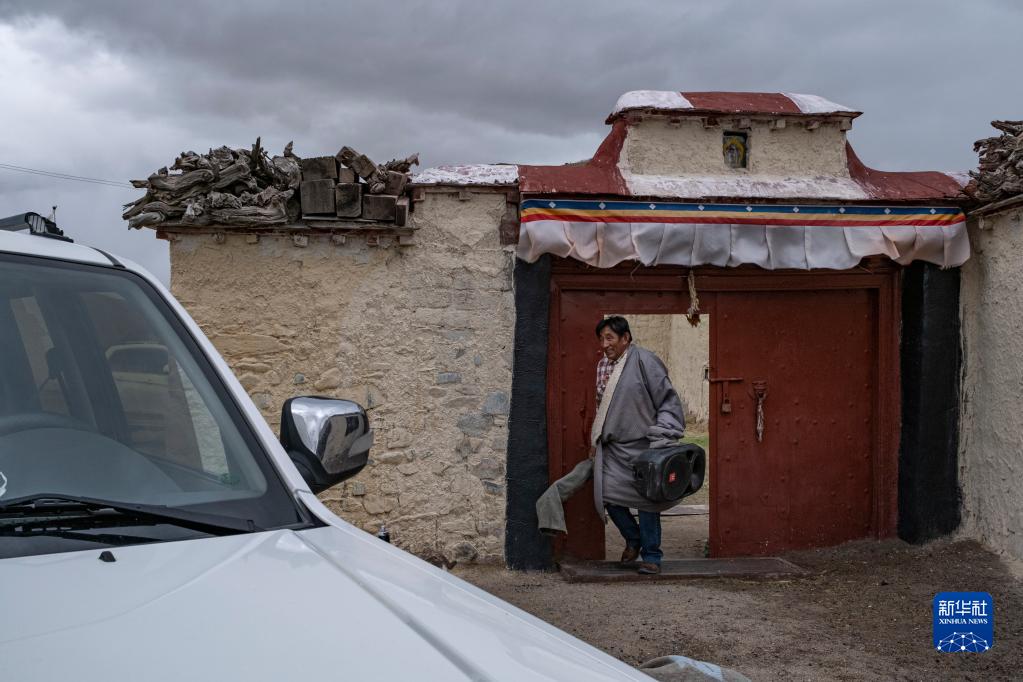 在西藏當雄縣拉多村,羅珠在準備放映電影所需的器材(5月20日攝)。新華社記者 卞婷 攝