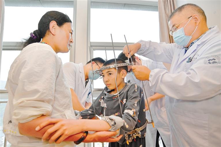 教育“走出去”取得成功的同時,醫療幫扶也同樣創造了奇跡。2020年8月,經援藏工作組對接協調,蕭山區中醫院在色尼區啟動“抬頭挺胸·重塑脊梁”圓夢行動。曾因脊柱嚴重畸形、身高僅有135厘米的藏族小伙尼瑪扎西來杭免費治療半年后,奇跡般地長高了22.3厘米。截至目前,已有25位像尼瑪扎西這樣的患者得到救治,挺起了人生的脊梁。
