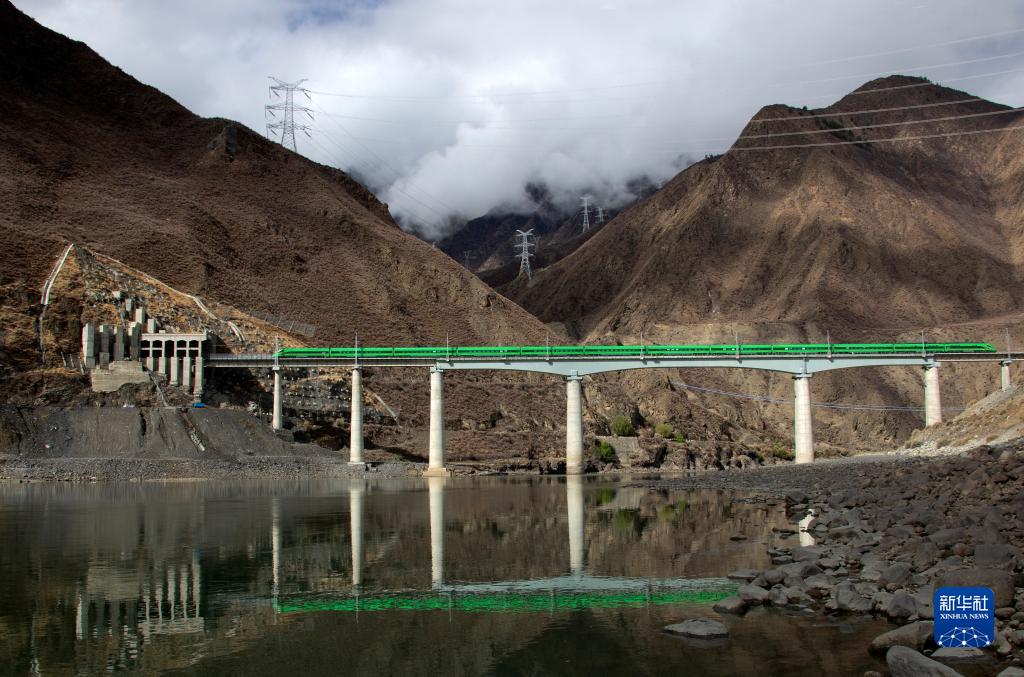 4月14日,復興號列車行駛在西藏朗縣境內的雅魯藏布江上。新華社記者 覺果 攝