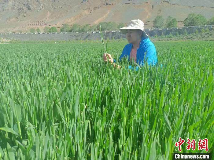 7月5日,北大荒集團九三分公司鶴山農場有限公司的工作人員正在西藏自治區日喀則市桑珠孜區的田間忙碌著。目前,577畝的高原青稞長勢喜人,豐收在望。
