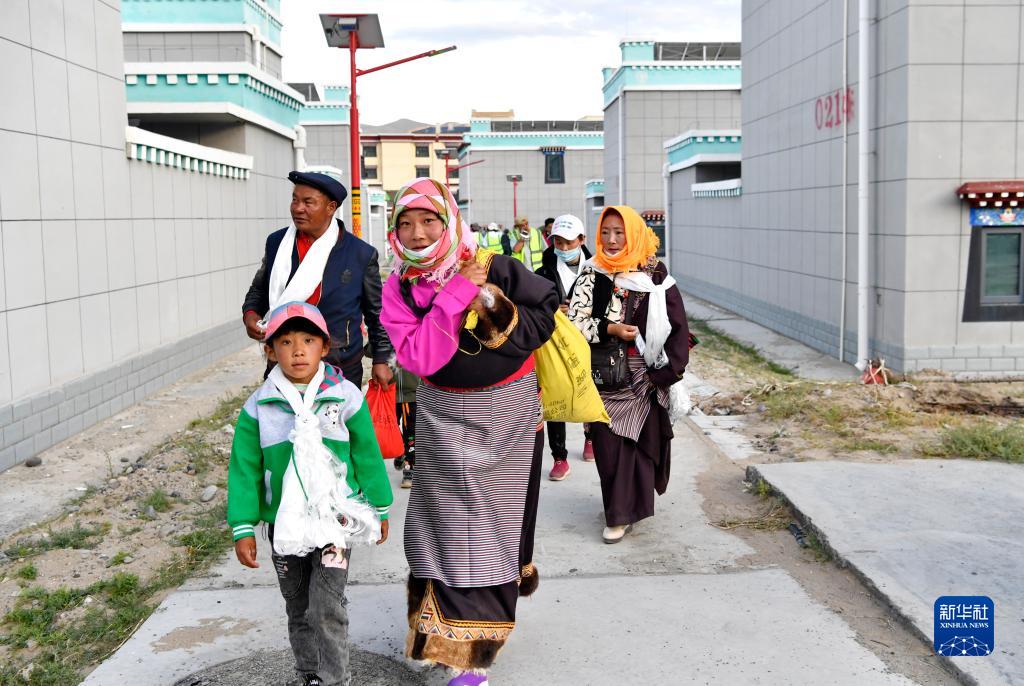 剛剛抵達森布日安置點的雙湖縣牧民正前往新家(7月19日攝)。新華社記者 張汝鋒 攝