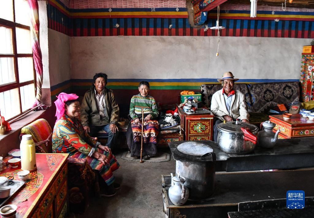 貢覺(右一)一家人在雙湖縣多瑪鄉果根擦曲村的家中(7月12日攝)。新華社記者 晉美多吉 攝