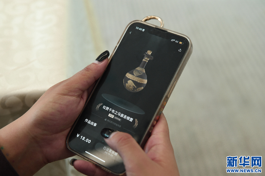 7月21日,用戶在手機(jī)端預(yù)約搶購西藏首個(gè)數(shù)字藏品《松贊干布之馬首圣銀壺》。新華網(wǎng)旦增努布 攝