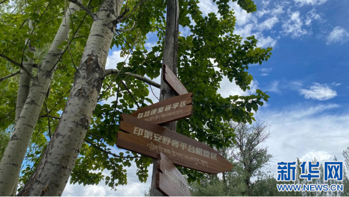 圖為薩己林野奢營地路標(8月2號攝)。新華網發 丹增卓嘎(實習生)攝。