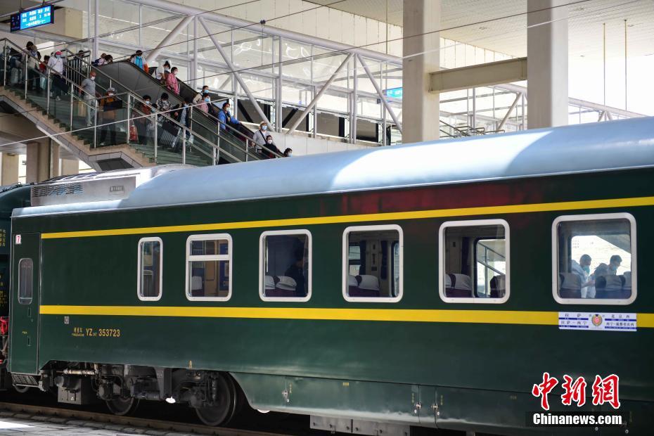 8月11日,旅客有序來到鐵路拉薩站站臺上。據悉,自本次疫情發生以來拉薩火車站日均離藏運送旅客數量約6000人次,貢嘎機場累計出港旅客約2萬人次。 中新社記者 貢嘎來松 攝