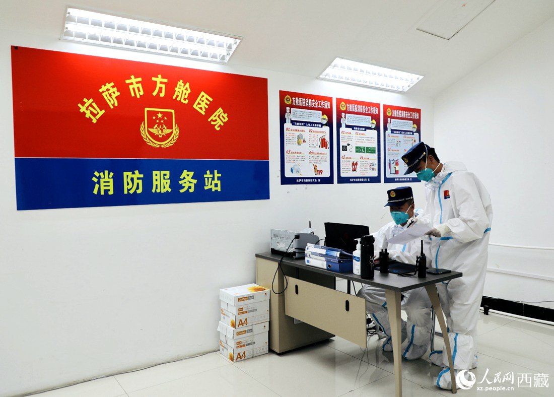 方艙醫院消防服務站中消防人員在工作。人民網 次仁羅布 攝