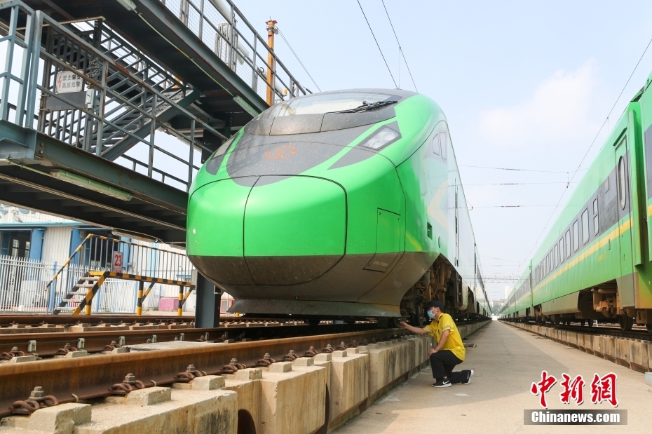 8月17日,北京車輛段西庫檢車間,檢修人員剛剛完成一列時速160公里動力集中型復興號動車組(俗稱“綠巨人”)的檢修工作。這里是京津冀地區唯一的“綠巨人”檢修維修基地,肩負著18列共計261節車輛的檢修任務。隨著暑運逐漸迎來返校返程高峰,檢修人員也在加班加點為列車做好體檢工作,確保運行安全。 中新社記者 賈天勇 攝
