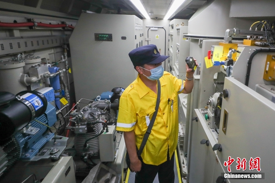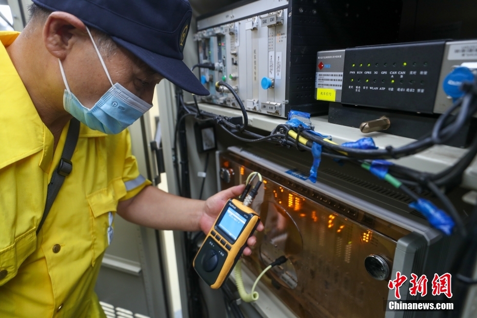 8月17日,北京車輛段北京西庫檢車間內,北京電務段檢修人員對時速160公里動力集中型復興號動車組(俗稱“綠巨人”)的運行數據進行檢查。這里是京津冀地區唯一的“綠巨人”檢修維修基地,肩負著18列共計261節車輛的檢修任務。隨著暑運逐漸迎來返校返程高峰,檢修人員也在加班加點為列車做好體檢工作,確保運行安全。 中新社記者 賈天勇 攝