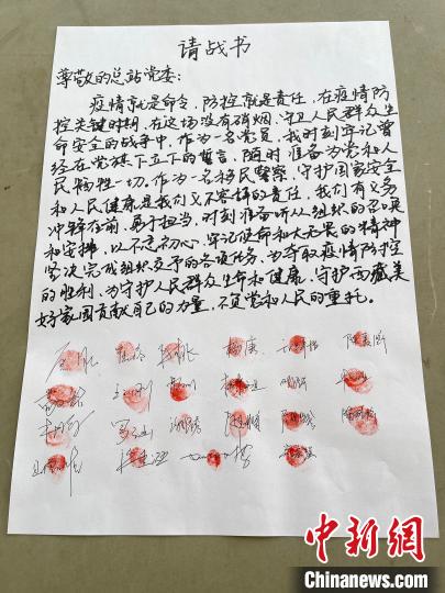 圖為執法調查支隊民警寫下請戰書,簽名并按手印。陸鑫 攝