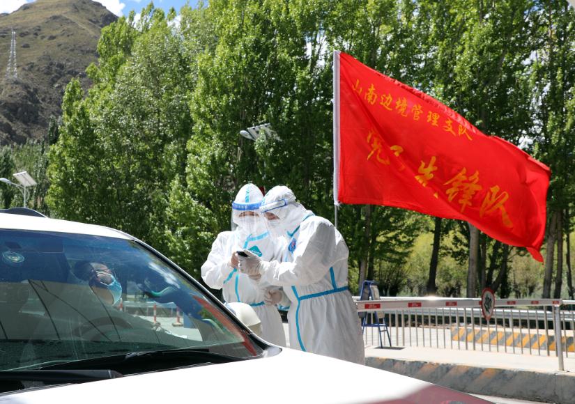 該支隊積極響應山南市委、市政府疫情防控需求,從機關層面著手,第一時間組建“黨員先鋒隊”。30余名青年移民管理警察主動請戰,火速奔赴疫情防控最前線。在進出市區各交通要道執勤現場,有序開展人員身份信息比對、核酸檢測報告查驗,車輛消殺等工作,全力確保人員、車輛、物資輸入輸出安全。