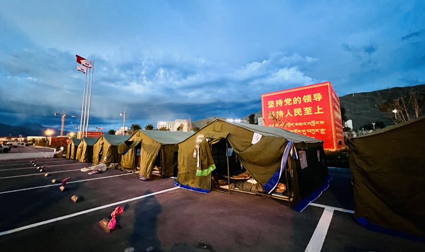 據介紹,為了盡快解決滯留旅客住宿問題,山南市貢嘎縣有關部門與機場協調劃出停車場南側區域,8月20日晚連夜奮戰搭建帳篷,并安排了四名志愿者駐點為旅客服務?!?0日晚間,我們搭建了8個帳篷,今天又增加了4個帳篷,目前共有12個帳篷。”鄒云說。