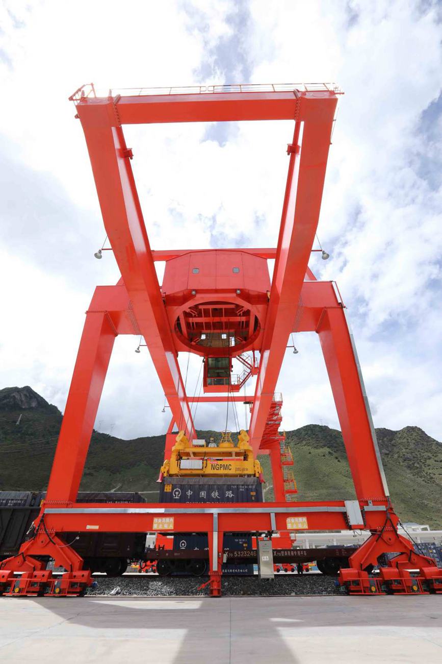 林芝站貨場內,集裝箱門吊不停的作業,一車車貨物不停的裝運,一個個忙碌的身影也清晰可見,他們用堅守換來拉林鐵路貨物的安全運輸,也為林芝市物資保障貢獻了一份力量。