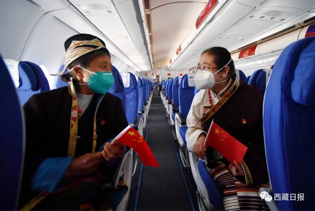今天下午,西藏自治區出席黨的二十大代表乘機抵達北京,向大會報到。