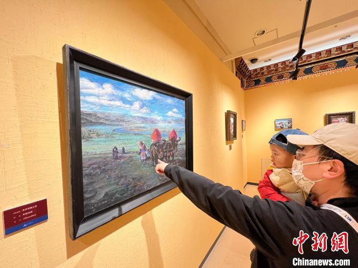 帶兒子一同前來參觀的向先生曾于2013年夏季到西藏旅游。他告訴記者,畫中的風景、建筑和服飾非常寫實;有關冬季的畫作彌補了他未見西藏冬日美景的遺憾。