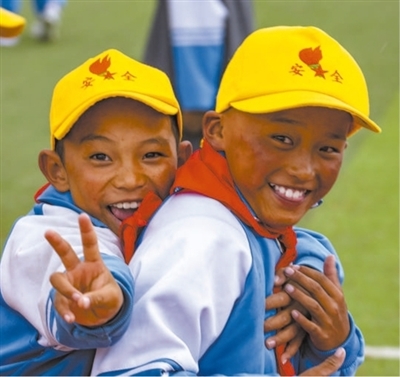 西藏自治區(qū)山南市貢嘎縣森布日小學,孩子們在操場上嬉戲。