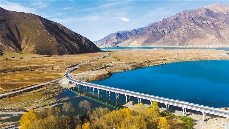 黨的十八大以來,西藏交通運輸事業取得巨大成就,形成了縱橫交錯、四通八達的綜合交通運輸網絡。十年來,全區公路總里程由6.52萬公里增至12.07萬公里,高等級(高速)公路通車里程由38公里增至1105公里,以拉薩為中心的3小時綜合交通圈正加快形成,拉林鐵路建成投運,復興號首次開上高原……一條條團結線、一條條幸福路,為西藏經濟社會發展提供了有力支撐。