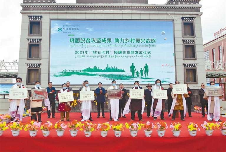 農行那曲分行聯合色尼區委舉辦“鞏固拓展脫貧攻堅成果、助力鄉村振興戰略”鉆石卡村授牌暨貸款發放儀式。 (圖文均由農行那曲分行提供)