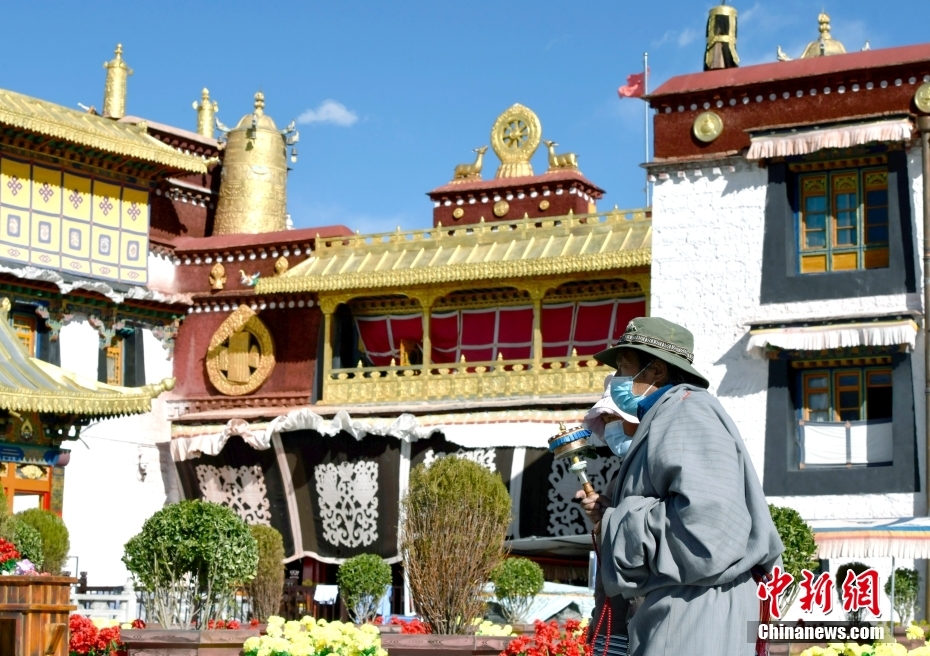 11月17日,拉薩市民在大昭寺外散步。中新社記者 李林 攝