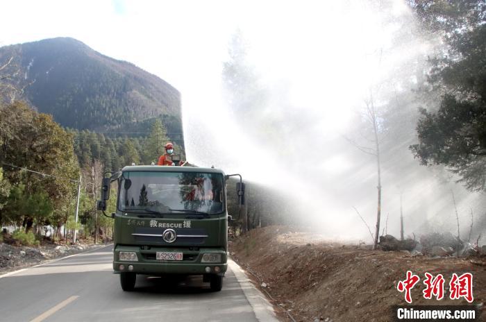 踏查中,中隊出動20人,編排成3個小組,攜帶地圖、指北針、無人機等勘察裝備,采取實地查看、詢問了解、研究分析等方式對植被含水量、可燃物載量、水源分布、地形地貌、植被類型、道路交通等情況進行勘察,及時掌握林情、社情等最新數據資料。同時,配合波密縣應急管理局、林草局等部門沿318國道沿線開展林下可燃物清理和灑水增濕作業。