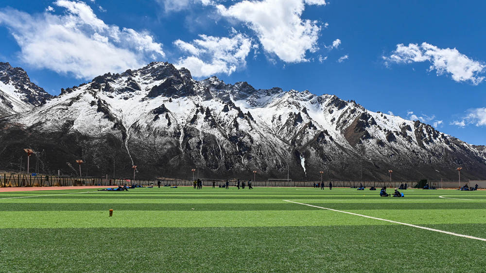 這是西藏那曲市嘉黎縣中學的足球場(3月30日攝)。新華社記者 周荻瀟 攝
