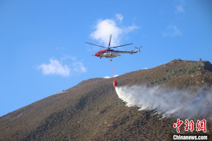 直升機(jī)開(kāi)展吊桶灑水作業(yè)。 西繞拉翁 攝