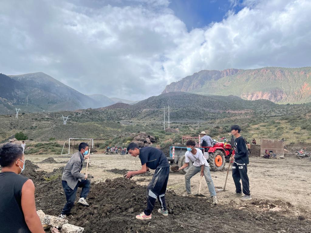 昌都市洛隆縣馬利鎮(zhèn)馬利村村民們自發(fā)修建的足球場。