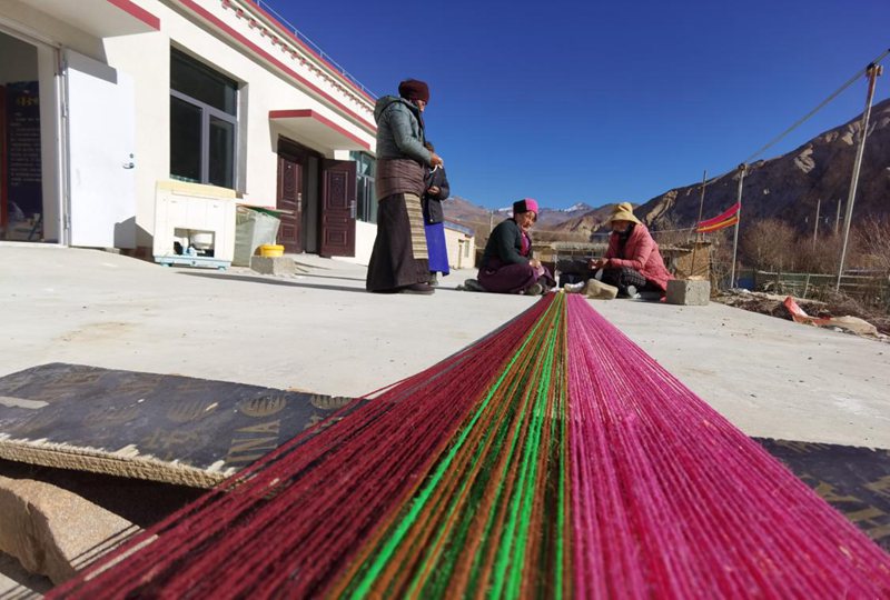 除了賣產(chǎn)品,次仁曲珍也心系十里八村的其他群眾。“我們的原材料(羊毛、羊絨),都是從周邊村子收購的。其實,以前很多老百姓家的羊毛要么自用,要么送人,幾乎很少出售。現(xiàn)在他們可以送到我這里,市場價7元—10元/斤?!惫爬系募徔椉妓嚺c珍稀羊毛(絨)材質(zhì)融合,是每一位阿佳用心編織的直抵人們內(nèi)心深處的柔軟,更是她們的五彩夢想。