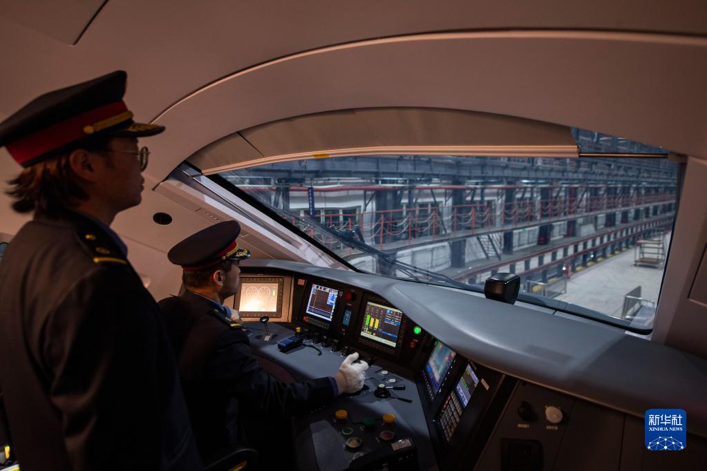 在拉薩機輛整備中心,黃起崗將動車組駛入停車位置(1月11日攝)。新華社記者 孫非 攝